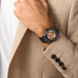 Skeletonised and finished in blue using physical vapor deposition, they possess a chameleon-like quality, shifting from almost black to an electric cobalt depending on the angle of the light. At 6 o’clock, a subsidiary seconds dial sits above the word “England,” a proud reminder of the watch’s final assembly point.