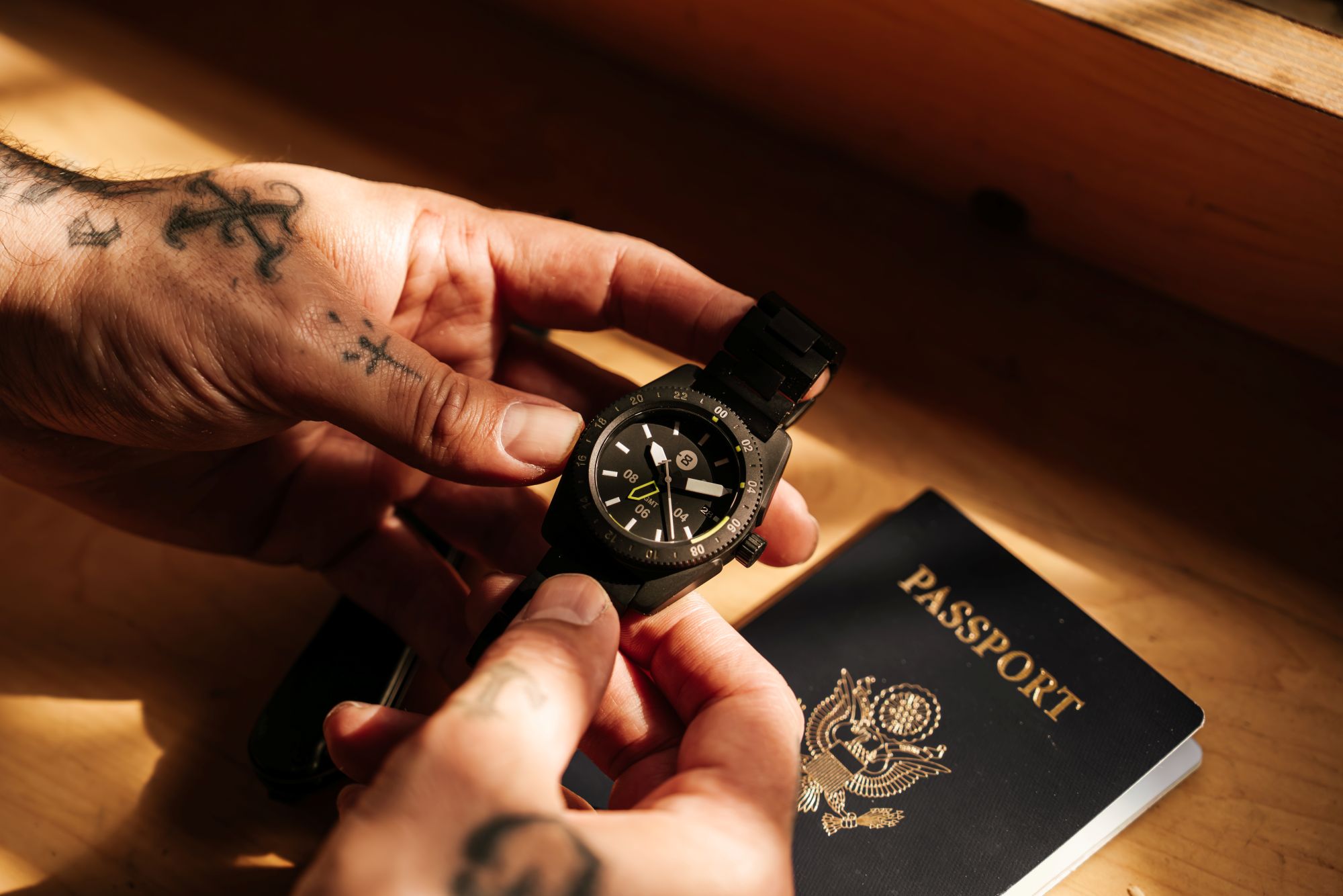 These details are infilled with white Super-LumiNova® BG W9, which emits a cool, icy blue glow in low light—a nod to the cold, distant beauty of the gas giant. The sunray brushed black hands float above this abyss, ensuring that while the watch embraces darkness, legibility remains paramount.