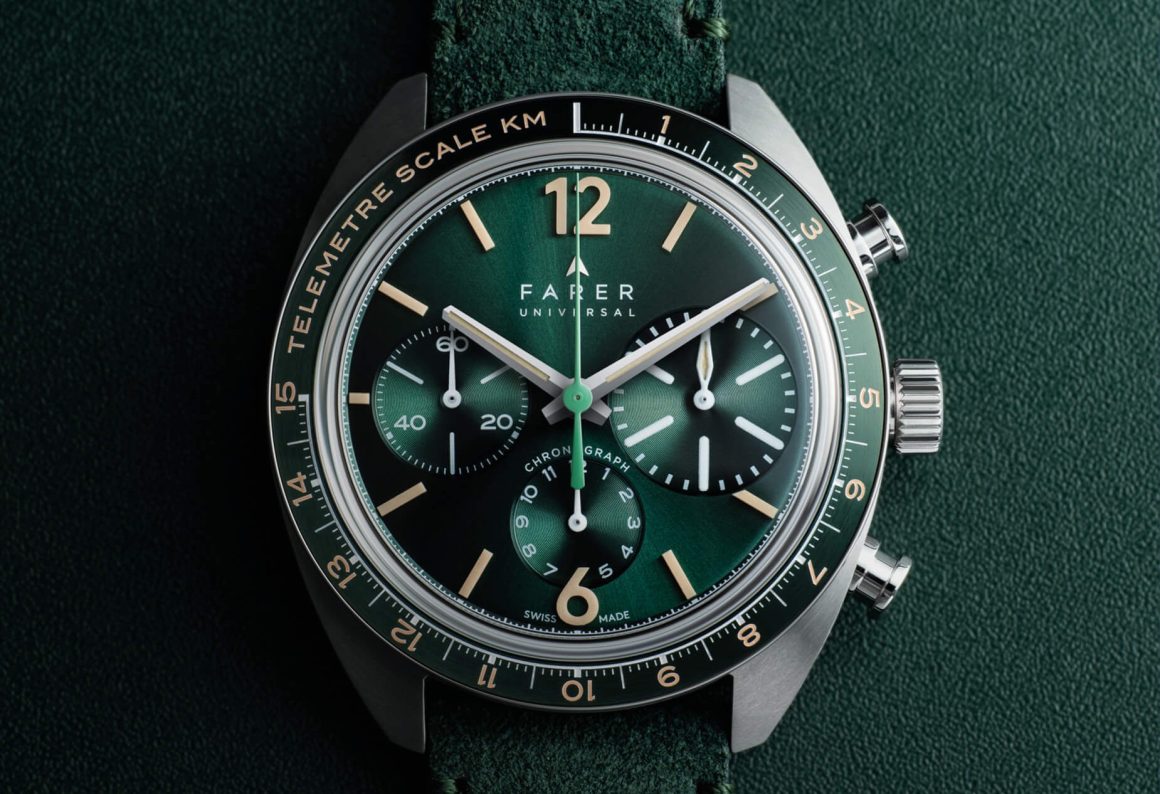 With its striking colour scheme, thoughtfully designed layout, and high-quality Swiss movement, the Farer Moritz-Green Titanium Chronograph Sport Watch is a thoroughly modern descendant of the distinctive racing chronographs of old, a limited edition timepiece that embraces the heritage of speed and style with a distinctively Farer flair.