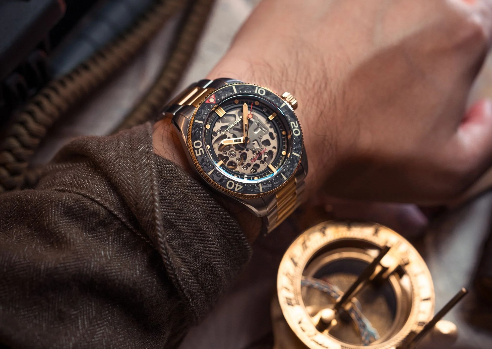 Powered by a Japanese automatic movement, this field watch has a 44-hour power reserve and can be wound by hand for added convenience. Its shock-resistant construction and 200-meter water resistance ensure that it can handle just about anything you throw at it, from mountain treks to unexpected river crossings. It’s a watch built to withstand the toughest environments while looking effortlessly cool.