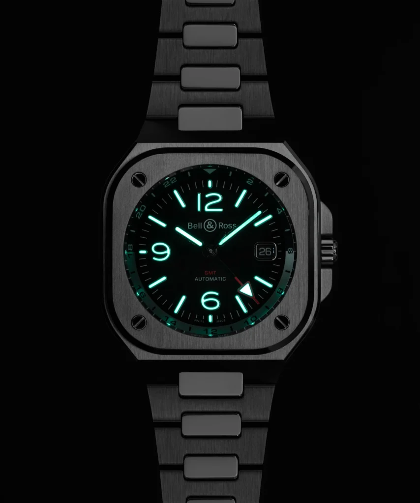 The natural evolution of this journey is the Bell & Ross BR-05 GMT Black Watch, a timepiece that feels inevitable in its execution and essential in its function. Priced at £5,200, it is a masterclass in “instrumental luxury,” designed specifically for the modern globe-trotter who views the departure lounge as a second home.