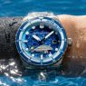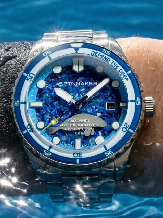 When the cabin lights go down on a long-haul flight, the watch transforms. The rhodium-plated hands feature crisp white Superluminova inlays, while the hour markers utilize a stealthy gray Superluminova. Both of these treatments emit a vivid blue glow to ensure perfect low-light legibility.