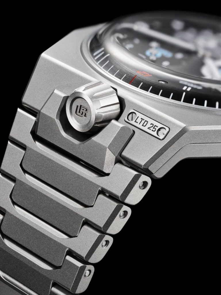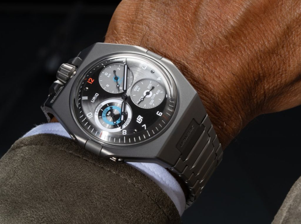 Adding further technical interest is the incorporation of the patented Double Flow Turbine, an evolution of URWERK’s self-winding system. This mechanism utilizes two stacked propellers rotating in opposite directions to create a precisely managed airflow, slowing the rotor and protecting the movement from the high constraints exerted during rapid spinning.