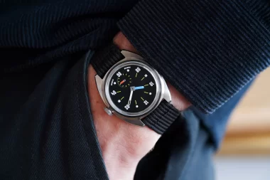 What sets the Modul D apart is its modular case construction. The black steel body that encases the movement is distinct from the brushed steel outer shell, attached via two visible screws on each side—a striking detail that emphasizes the watch’s unique construction. The case is not just about looks; it’s engineered for versatility, accommodating a range of movement calibres, which adds to the Modul’s appeal as a standout piece for any discerning watch collector.