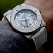 The ProLab Sand takes the iconic, sandblasted 40mm case of the Laco PRO series and pairs it with a dial inspired by Circula’s rugged field-watch sensibilities. Its warm, sand-colored surface features a sophisticated circular texture at the center, surrounded by a matte outer ring coated in Old Radium Super-LumiNova.