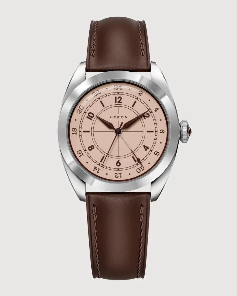 Completing the package is a strap that rivals the watch head in quality. Sourced from Tanneries Haas in France, the hand-crafted Baranil calfskin leather is supple, durable, and develops a beautiful patina over time. It secures the 10.6mm thick case to the wrist with elegance, ensuring the watch slides effortlessly under a cuff. The Heron Mirabel GMT Cigar Club is a rare find: a watch that captures the romance of a bygone era while delivering a modern, luminous twist that demands to be seen.