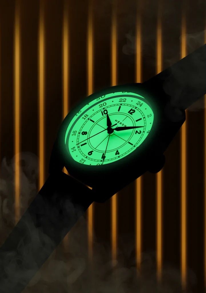However, the Mirabel’s true character is revealed only when the environment shifts. Heron calls it their “party trick,” but it is more of a revelation. Beneath the refined enamel surface lies a full layer of C3 Swiss Super-LumiNova. In daylight, the watch is a paragon of understated style; but as the lights dim—perhaps as the evening transitions from the boardroom to the lounge—the entire face erupts in a radiant glow.