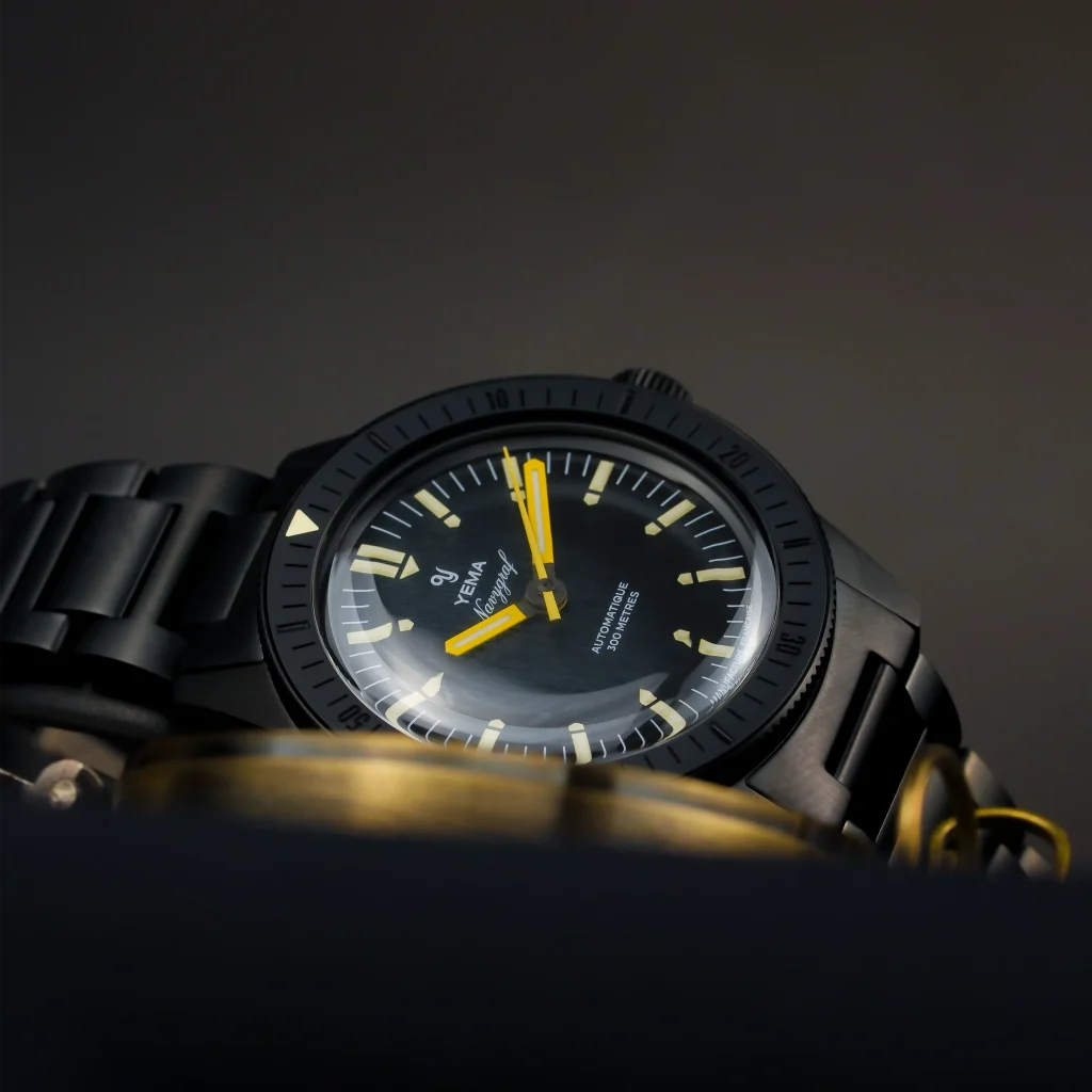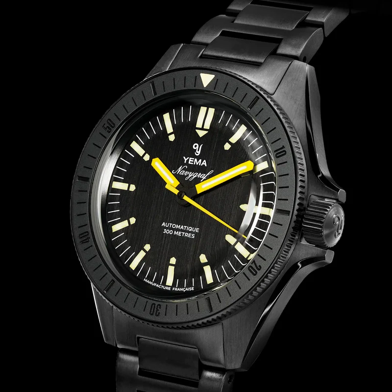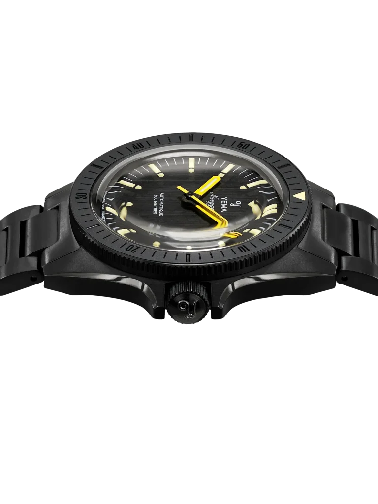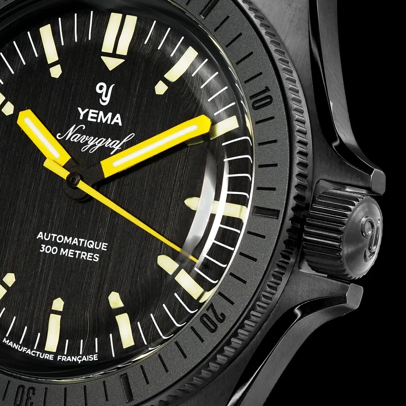 To ensure the blacked-out aesthetic doesn’t read as flat or uninspired, Yema deliberately utilized vertically brushed surfaces. This offers an ultra-low reflectivity for a true tactical feel, perfectly contrasted by subtle, polished chamfers along the profile that add a necessary edge of sophistication.