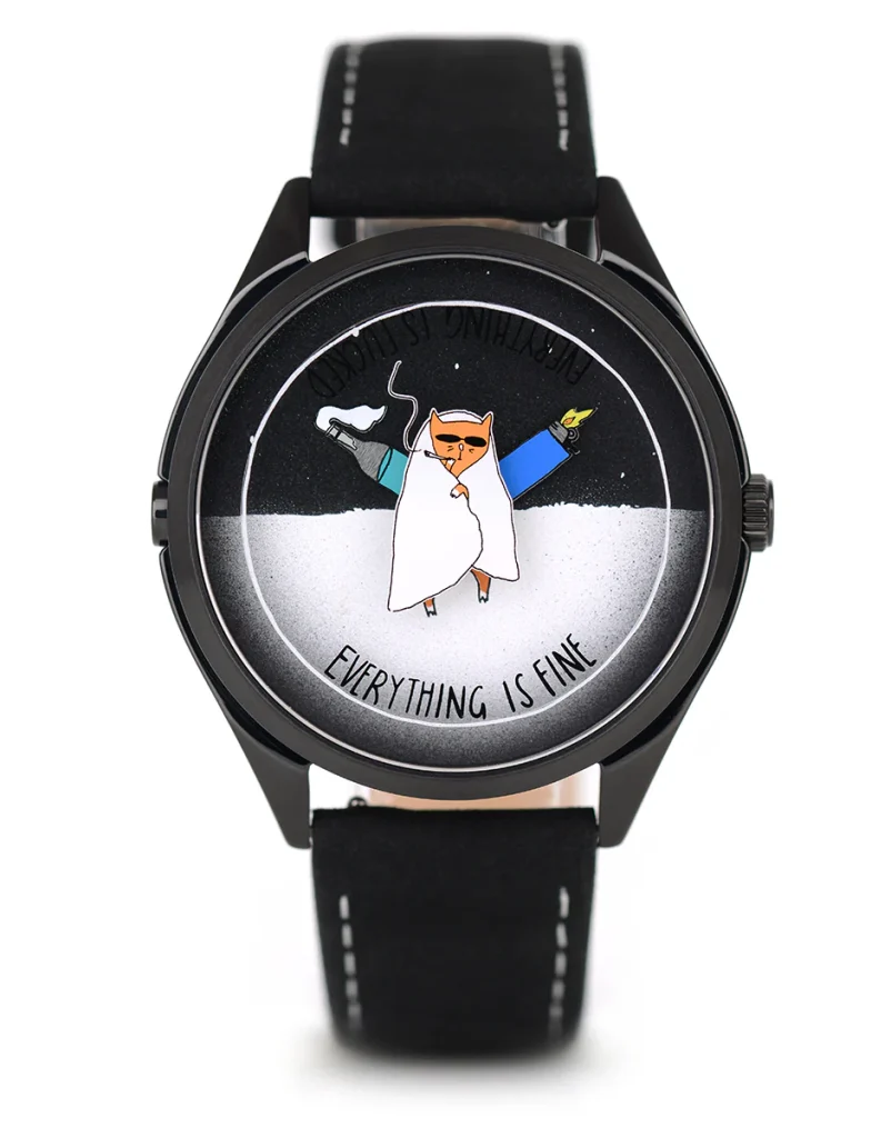 It is a reminder that in a world obsessed with perfection and “hustle,” it is perfectly acceptable to feel both fine and entirely overwhelmed at the exact same time. Whether you’re heading into a boardroom or a dive bar, this watch tells the world that you’re in on the joke.