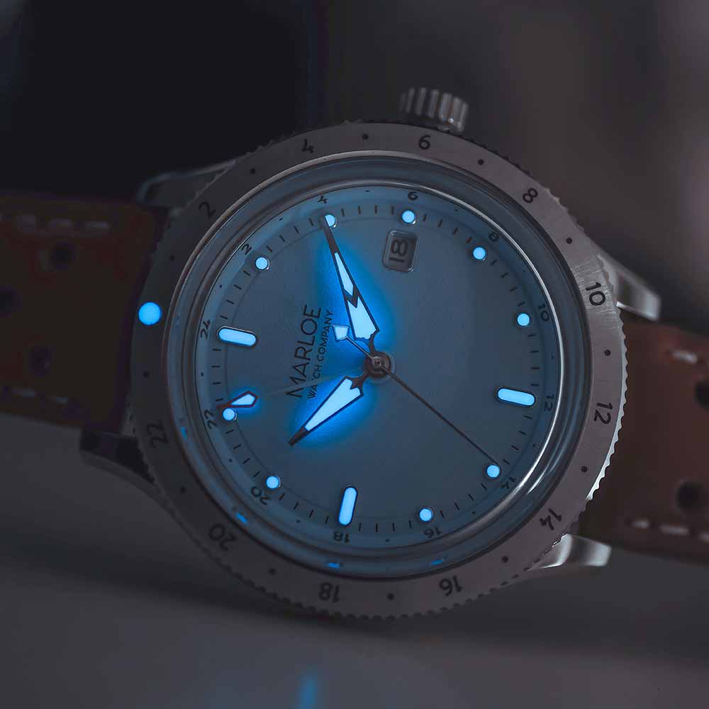 Driven by a 28,800 bph movement with a 40+ hour power reserve, and built with practical features like a hacking function and Parashock anti-shock system, the Day GMT is built to last. With 50-metre water resistance and Natulite lume applied to the hands, indices, and bezel, this timepiece is ready for every journey. Marloe’s achievement is delivering a watch where the high standards of technical sophistication inherent in a ‘true’ GMT movement are matched by a design that exudes considered quality and captivating aesthetics.
