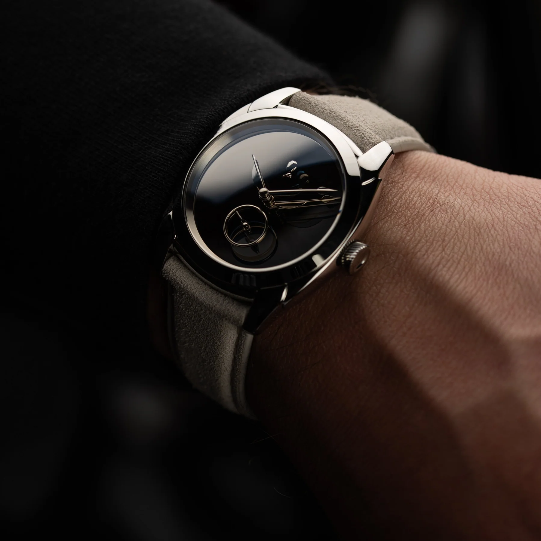 The Explorer features a matte stainless steel case that immediately captures attention with its understated elegance. It’s substantial yet comfortable, with a unique case shape that wears like a 39mm watch on the wrist despite its 42mm left-to-right dimensions. At just 11mm thick and boasting a 47.5mm lug-to-lug span, the Explorer offers a perfect balance between robustness and wearability. The fixed bezel and lugs add to its utilitarian aesthetic, while the recessed sapphire crystal is tough enough to handle the demands of the great outdoors.