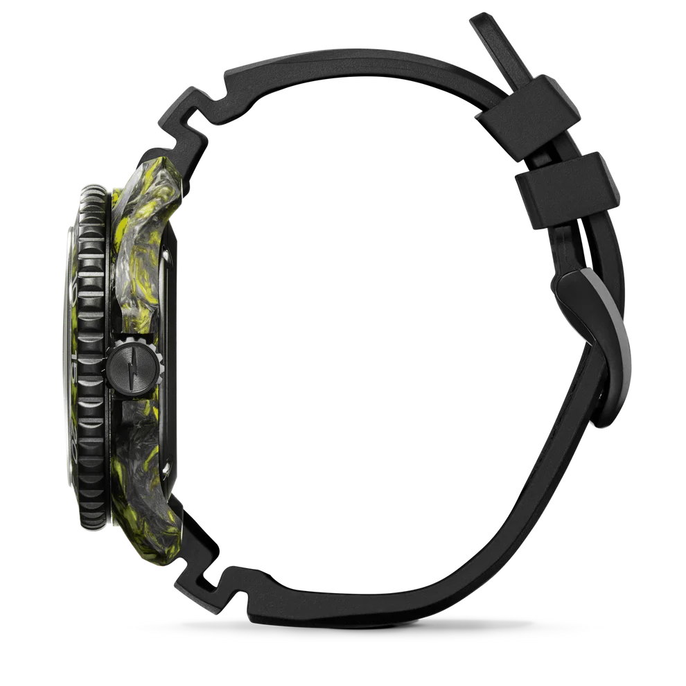 Beyond its material novelty, the Forged Carbon Monster is a serious, adventure-ready machine. The watch adheres to the rigorous ISO 6425 tested specifications required of a professional dive watch, guaranteeing its performance where it matters most.