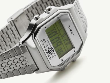 One of the standout features of this timepiece is the mirrored mask display, which showcases a sequence of digits from 0 to 23, with the number ‘6’ encircled as a nod to MM6 Maison Margiela’s signature numerical motif. This unique touch is a testament to the design house’s avant-garde approach, blending seamlessly with Timex’s retro roots. The watch is equipped with a mineral lens to protect the display, ensuring durability while maintaining a clean and polished appearance.